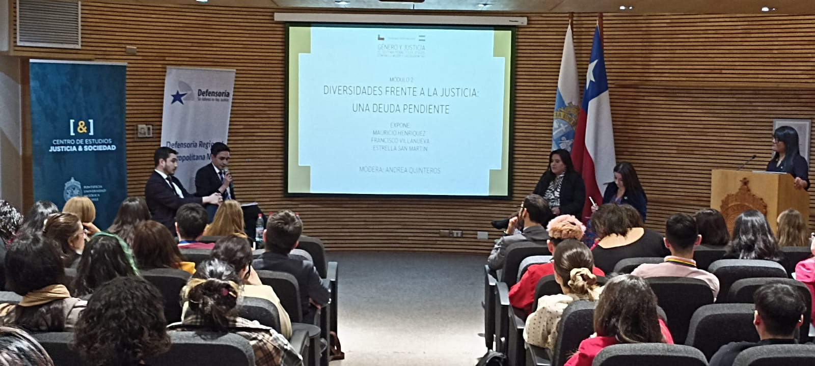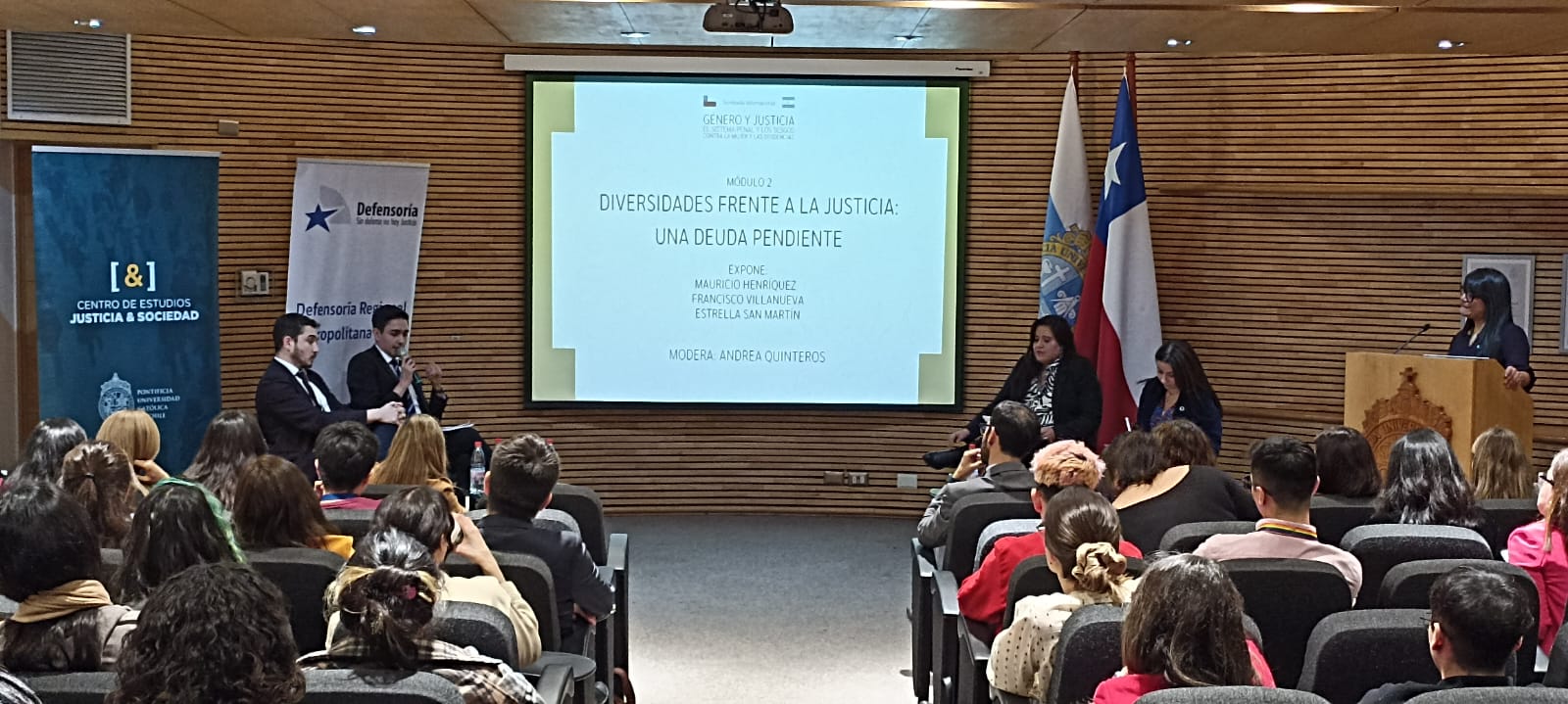 Con más de 130 personas presentes, las palabras de bienvenida del subsecretario Justicia, Jaime Gajardo, de nuestro Director de Investigación y Desarrollo, Pablo Carvacho, las exposiciones de las académicas argentinas María Fernanda Rodríguez y Graciela Julia Angriman, los comentarios de nuestra Directora Ejecutiva, Catalina Droppelmann y la conversación de dos paneles especializados, se desarrolló el Seminario «Género y Justicia: el sistema penal y los derechos sesgos contra la mujer y las disidencias».